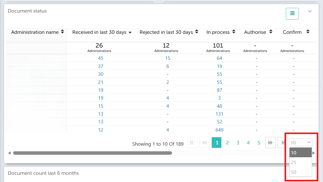 - Dashboard Improvements – The dashboard now allows you to view administrations in increments of 10, 25, or 50 items per page, making it easier to browse through large lists.