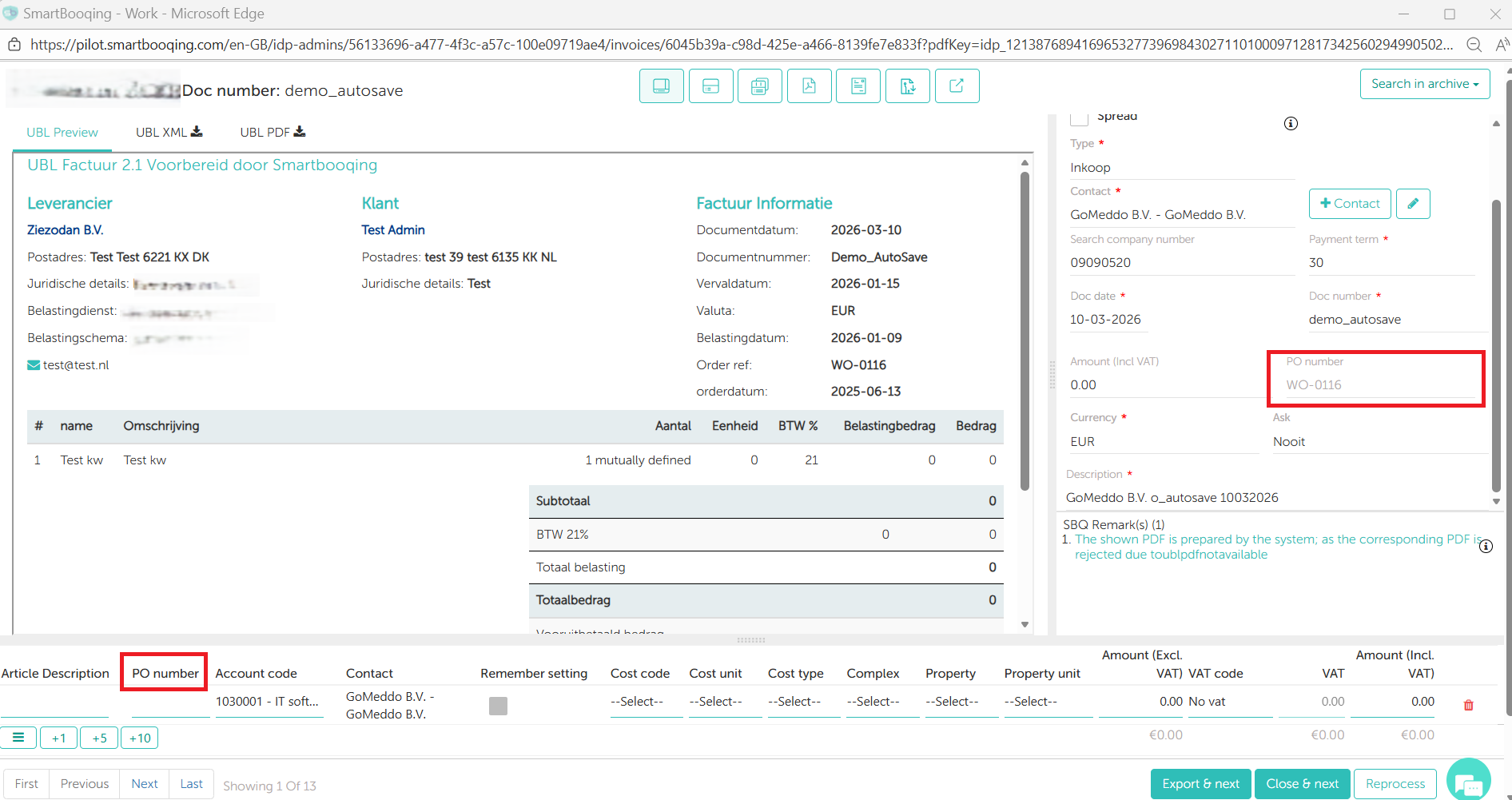 By default, you can adjust the invoice lines on the Invoice Detail Page (FDP). If you do not want that, you can enable the grouping of invoice lines, also known as ‘compacting’. In that case, item lines are merged when exporting. If grouping is on, you cannot adjust the invoice lines on the Invoice Detail Page (FDP).