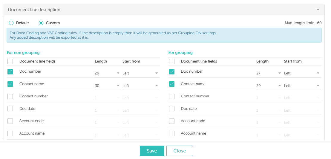 Check and update the header and line description settings to ensure they are correctly configured.