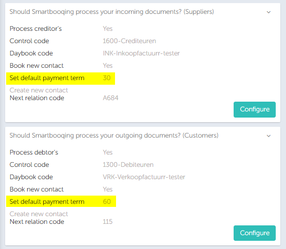 Ensure the payment terms and related settings are correctly configured for the administration.