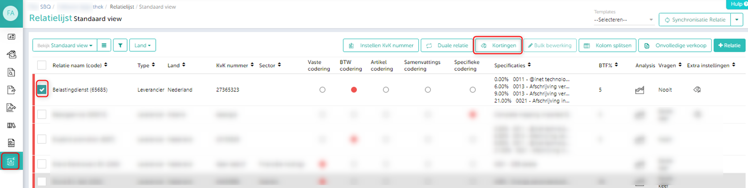 - The symbol is shown for activated discount setting in column ‘Settings applied’