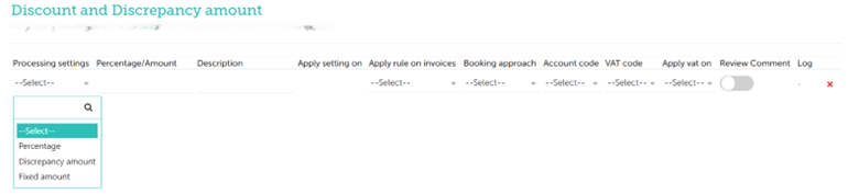 - Current discounts mentioned on the invoice are not included in the system. Only the calculated value in percentage as specified in the settings is applied. Only % can be entered in the ‘percentage’ section. No amounts.