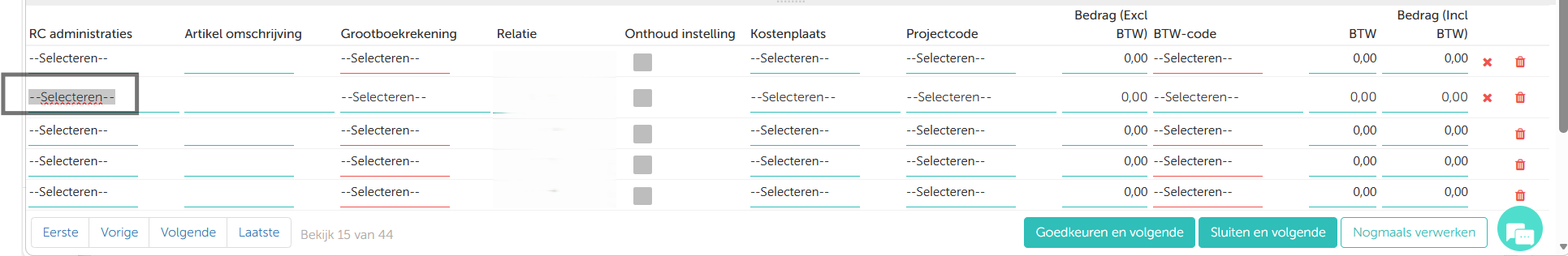 - Kan worden geselecteerd voor gehele facturen danwel regels daarvan